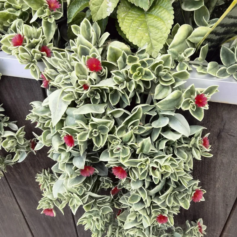 This Ice Plant is not only beautiful but also relatively easy to care for, making it an excellent choice for both novice and experienced plant enthusiasts. Its drought-tolerant nature means it doesn’t require frequent watering, and it thrives in sunny locations. The delicate pink flowers contrast beautifully with the variegated foliage, creating a visually appealing texture and color palette. Consider grouping it with other succulents for a diverse and eye-catching arrangement.