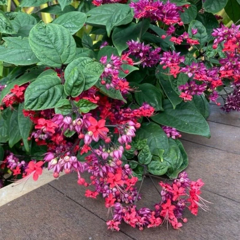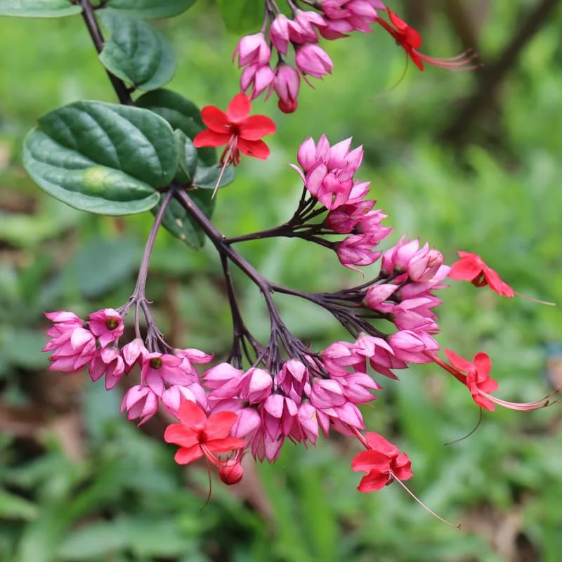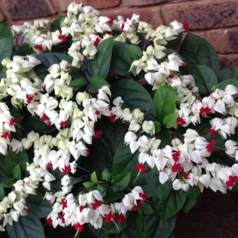 These vines are not only visually appealing but also offer several benefits. They attract pollinators like butterflies and hummingbirds, contributing to a healthier and more vibrant garden ecosystem. The Clerodendrum Thomsoniae can be grown in containers or trained to climb trellises, providing versatility in your garden design. Their lush green foliage provides a beautiful backdrop to the striking red and white flowers, creating a captivating display throughout the blooming season.