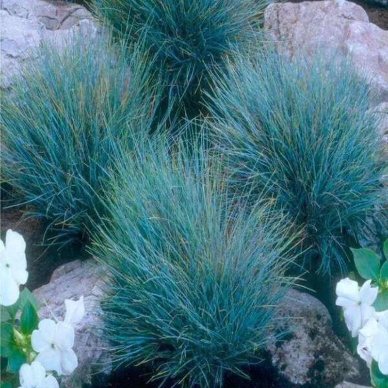 These ornamental fescue grasses provide a unique texture and color contrast in any garden setting. The cool blue hues create a soothing and visually appealing environment. They are also drought-tolerant, making them ideal for xeriscaping and water-wise gardens. Their compact size makes them versatile for various garden designs, from small urban spaces to larger landscapes.