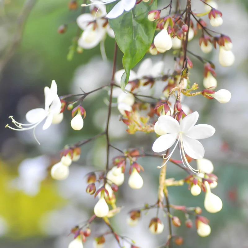 The Clerodendrum Wallichii Smithianum, also known as the Chain of Glory Vine or White Light Bulb Vine, is a stunning addition to any garden or indoor space. This beautiful flowering vine produces cascading chains of elegant white flowers, resembling strings of light bulbs, hence its unique name. The Clerodendrum Wallichii will add beauty and charm to your home.