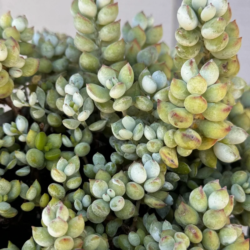 - Unique Foliage: Features rounded, fleshy leaves with a powdery coating.