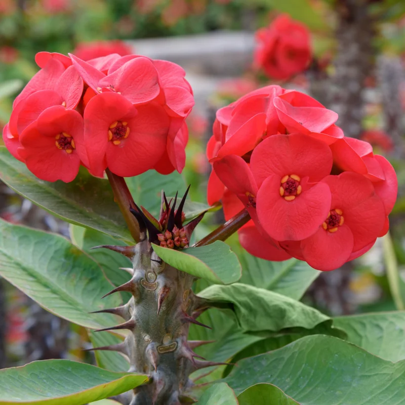 The Crown of Thorns plant is surprisingly easy to care for. It prefers bright, indirect sunlight and well-draining soil. Water thoroughly when the soil is dry to the touch, allowing excess water to drain away. Avoid overwatering, as this can lead to root rot. With proper care, this Euphorbia milii will reward you with its continuous blooms and unique charm.