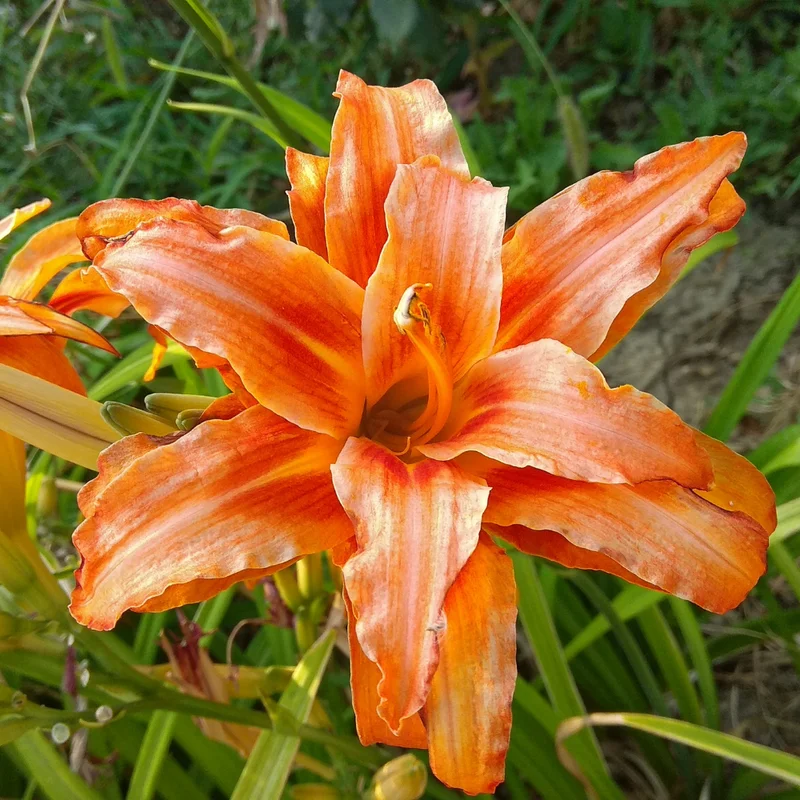 These orange daylilies offer several benefits for your garden. They are incredibly low-maintenance, requiring minimal watering and fertilization once established. Their vibrant color attracts pollinators like bees and butterflies, enhancing the biodiversity of your garden. Daylilies are also known for their deer resistance, making them a great choice for gardens in areas with high deer populations. These flowers will provide beauty and function to your garden.
