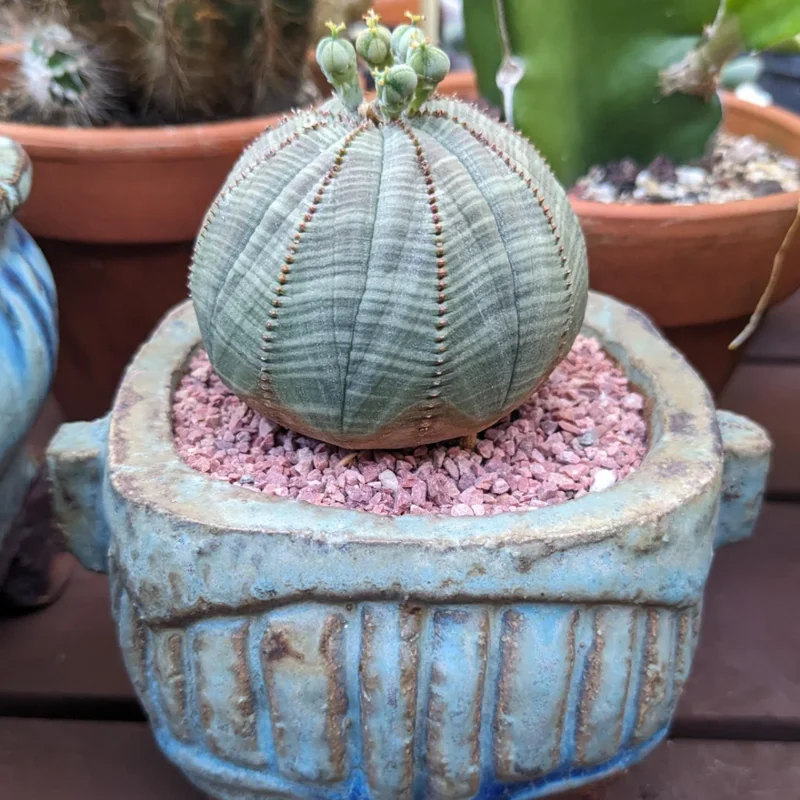 The Baseball Plant succulent is a slow-growing plant and does not require frequent repotting. Repot only when the plant becomes root-bound or the soil is depleted of nutrients. Choose a pot that is only slightly larger than the current one to prevent overwatering. Handle the plant with care during repotting, as it can be sensitive to disturbance. With proper care, your Euphorbia Obesa Hybrid will thrive for many years, bringing joy and beauty to your home or garden.