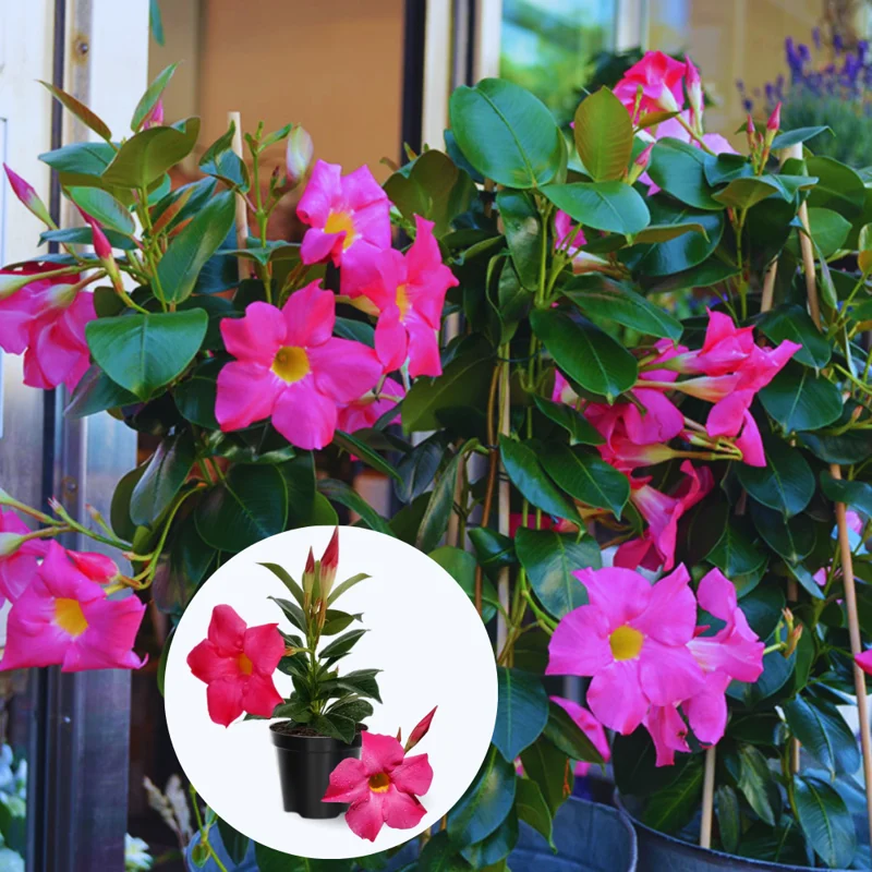 These fragrant Mandevilla plants are perfect for adding a touch of the tropics to your garden or home. These vibrant pink mandevilla vines are known for their long blooming period, providing beautiful color from spring through fall. With this offer, you will receive three starter plants, ready to climb and bloom. These mandevilla plants are versatile and can be grown both indoors and outdoors, making them a fantastic addition to any space. They are easy to care for and will reward you with stunning blooms throughout the growing season.