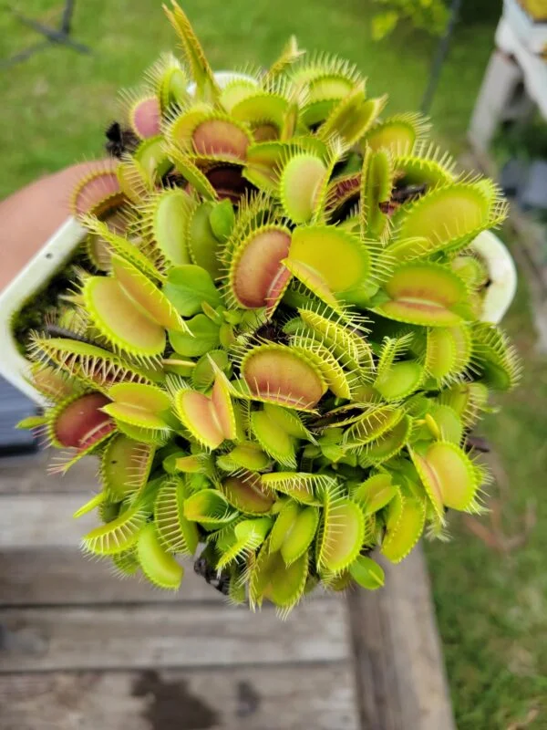 An incredible low-growing flytrap that quickly forms. One of the hardiest varieties. Large traps that develops striking seasonal coloration. Zones 5-11.