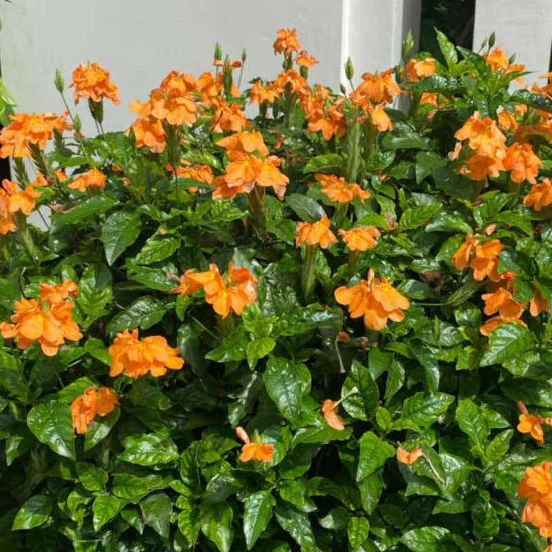 The Orange Crossandra Plant, a delightful addition to any plant collection, brings a burst of vibrant color with its continuous blooms. Standing at 3 to 5 inches tall, this compact plant is perfect for adding a touch of the tropics to your home or garden. Its manageable size makes it ideal for windowsills, patios, or as part of a larger garden display. The Orange Crossandra is known for its easy care and long-lasting flowers, making it a favorite among both novice and experienced gardeners.