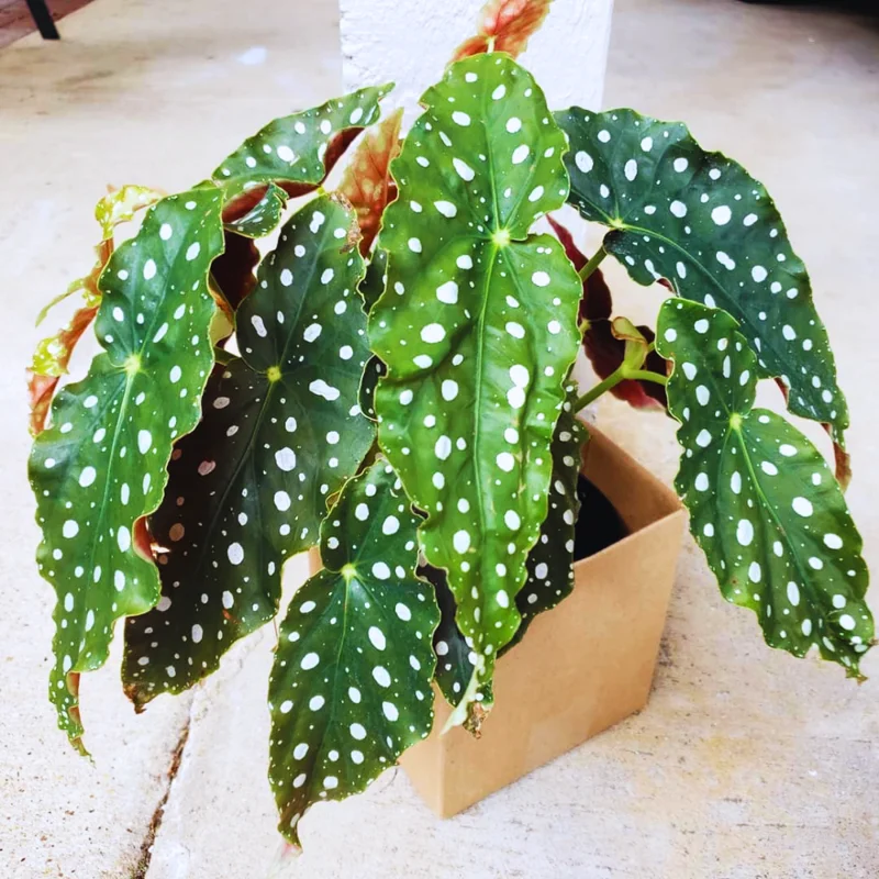 Key Features: The Polka Dot Begonia prefers bright, indirect light and well-draining soil. Water when the top inch of soil feels dry to the touch. Avoid overwatering, as this can lead to root rot. Fertilize monthly during the growing season with a balanced liquid fertilizer.