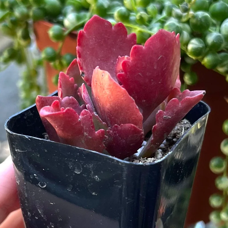 The Red Kalanchoe Plant Live is a stunning addition to any succulent collection or indoor garden. This rare Kalanchoe succulent features thick, scalloped leaves displaying a captivating blend of green, red, and purple hues. Its unique coloration and easy-care nature make it a highly desirable plant for both novice and experienced plant enthusiasts.