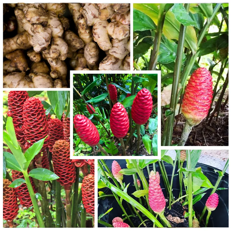 Enhance your outdoor space with the exotic charm of Shampoo Ginger Plant Roots (Zingiber Zerumbet). These live ginger rhizomes will flourish into beautiful tropical plants, adorned with vibrant red blooms, adding a touch of the tropics to your landscapes, borders, and garden beds. Easy to plant and care for, they’re a perfect addition for gardeners of all skill levels. The red pinecone ginger is a great addition to any garden.