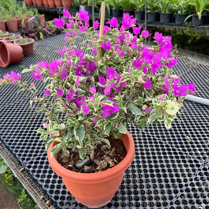 - How much sunlight does my Variegated Purple Bougainvillea need? This plant thrives in full sun, requiring at least 6 hours of direct sunlight per day for optimal blooming.