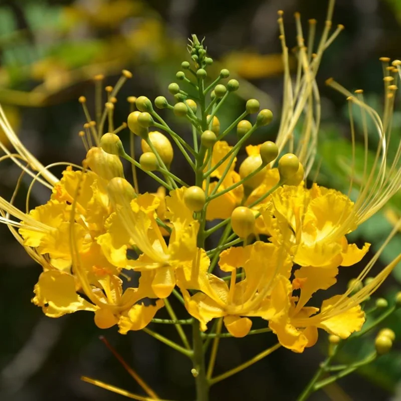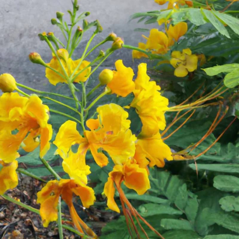 The Yellow Mexican Bird of Paradise, also known as the Pride of Barbados Dwarf Poinciana, is a stunning tropical addition to any garden. Known for its vibrant, yellow-orange flowers that resemble a bird in flight, this plant brings a touch of exotic elegance to your outdoor space. This plant is easy to grow and maintain and is perfect for anyone looking to add a pop of color to their garden.