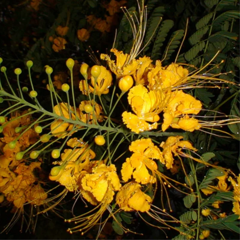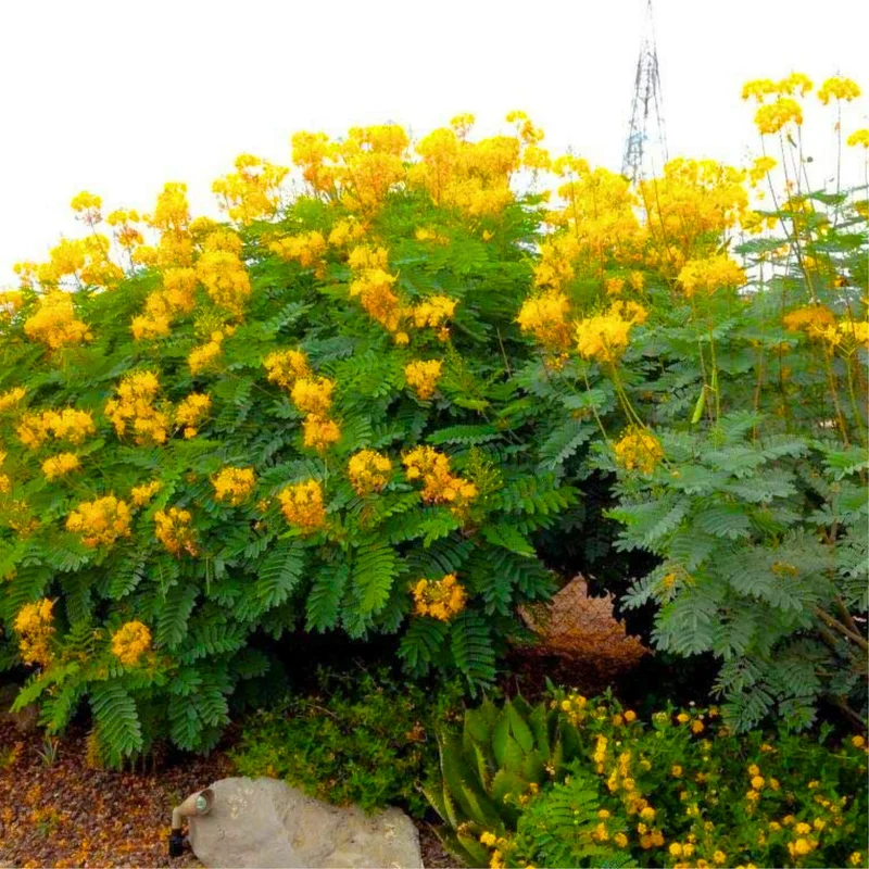 Consider planting these with blue seed plants for a beautiful contrast in your garden. The yellow and blue will complement each other. The Yellow Pride of Barbados is a great addition to any garden.